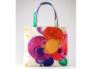 コロンと可愛いカラフルポーチ登場! 作品を基に立体的にデザインをつくりました。(全面転写染めで生地にしっかりと定着しています。)ファスナーは200色の中から選び、トップは可愛い丸型。表地は厚手の弱撥水加工の帆布。裏地はヴィヴィッドな黄色又はピンク色のコットン。内ポケット付き。金糸刺繍でのオリジナルロゴのタグ付き。